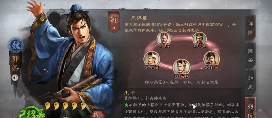 阵容上推荐采用二保一策略,让吕布作为主将,搭配辅助型武将提供保护和增益。比如郭嘉能提供免控和减伤,黄月英能增加伤害,华佗则能提供治疗续航。如果没有这些武将,也可以用祝融夫人或左慈替代,重点是为吕布创造稳定的输出环境。