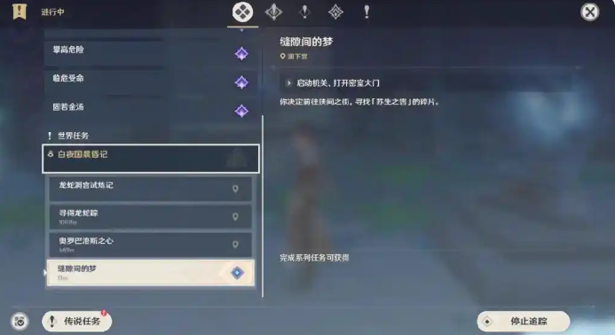 首先咱们需要前往狭间之街的任务提示区域,这里有个密室大门需要打开。记得先把时间调整到常夜状态,然后触摸门口的三角机关就能开启大门了。进入密室后会发现一个仙灵,跟着它走就能找到后续解谜的关键。注意密室里有气墙阻挡,这时候要切换到白夜状态才能继续前进。