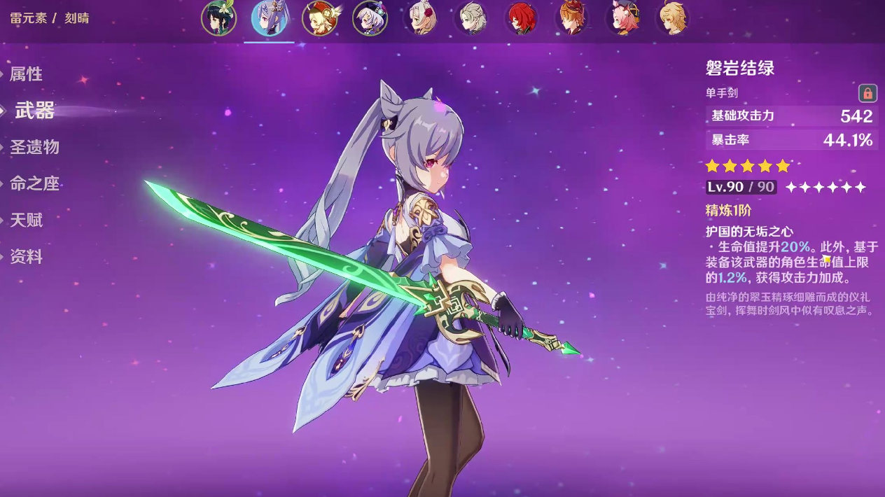 五星武器方面,磐岩结绿被认为是刻晴的通用毕业武器。这把武器的高额暴击率加成能很好地弥补刻晴自身突破属性,让圣遗物搭配更加灵活。天空之刃虽然副属性是元素充能效率不算理想,但其普攻和重击增伤效果显著,还附带10%移速和攻速加成,在特定场合下也有不错表现。风鹰剑虽然面板优秀,但由于偏向物理伤害加成,更适合物理流玩法而非主流雷伤刻晴。