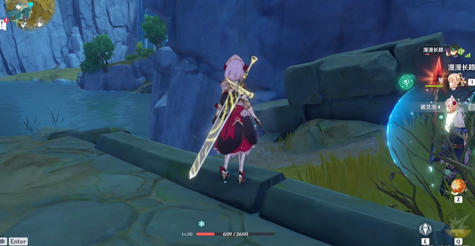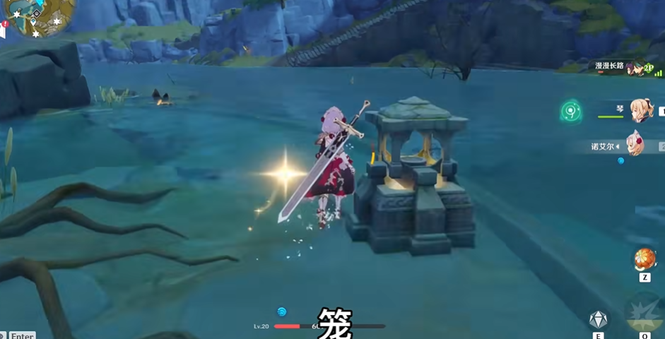 第二步是解谜环节,需要收集三颗星星点亮石柱。水池周围分布着发光岩石,击碎它们会掉落星星。注意星星会跟随你移动但有时间限制,需要快速将其带到石柱处。三个石柱全部点亮后,返回中央启动最终机关,水位完全下降后秘境入口就会显现。这个过程中可能会遇到岩元素障碍,记得带上大剑角色或岩元素技能来破坏岩石。