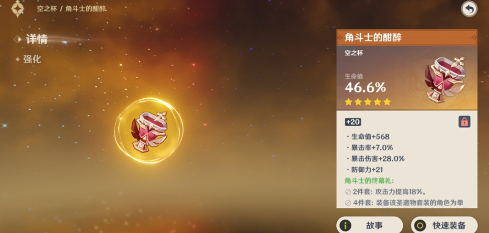 周本也是获取特定圣遗物的稳定来源,主要产出角斗士和乐团两套圣遗物。这两套圣遗物在游戏前期非常实用,角斗士适合物理输出角色,乐团则适合元素精通型角色。虽然后期有更专业的圣遗物副本,但周本掉落的圣遗物仍可作为过渡装备使用。圣遗物分解后获得的狗粮也是强化其他圣遗物的重要资源。
