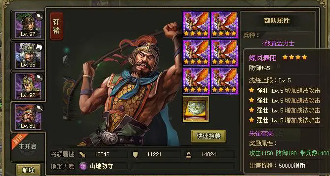 装备选择方面,烛龙套给太史慈,朱雀套给许褚,真霸下给周泰,青龙套给张飞是最佳配置。这些套装提供的属性加成能有效提升生存和输出能力。特别要注意的是敌方战法伤害真的很高,就算是穿真霸下的周泰也可能扛不住,所以战术克制和战法释放时机一定要把握好。