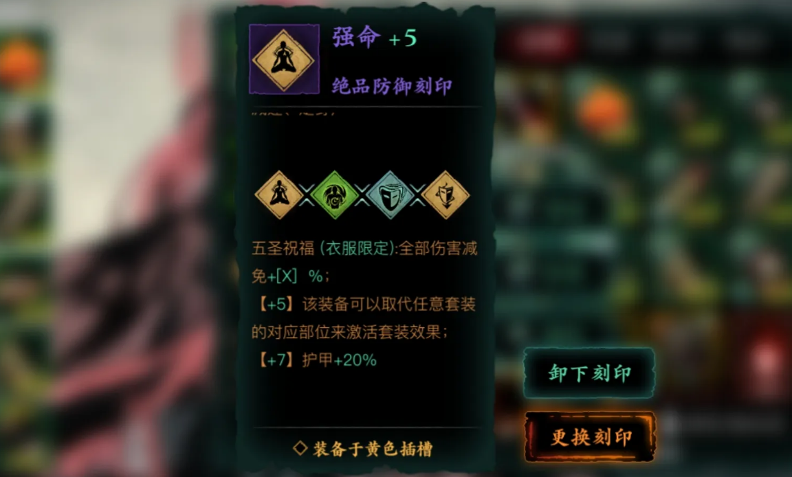 五圣祝福是中一种特殊的刻印组合效果,由强命、甘露、震荡、佛体四种刻印构