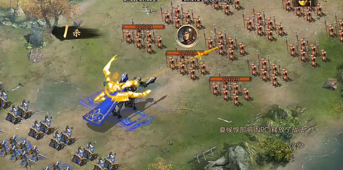 夏侯惇副本是山地地形,敌方携带4辆战车并使用70级方圆阵,战法具有类似