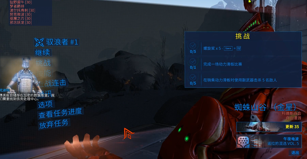 滑板任务的核心操作集中在特技组合与分数积累。进入金星平原或地球平原后,装备滑板可看到地图上的风道帮声望标记(小星星),触碰这些标记可提升声望。特技操作通过方向键配合鼠标左右键实现,例如←+右键或→+右键可触发基础特技,连续组合能叠加分数倍率。注意特技完成需落地后才能结算,虚空状态下分数不计入任务进度。