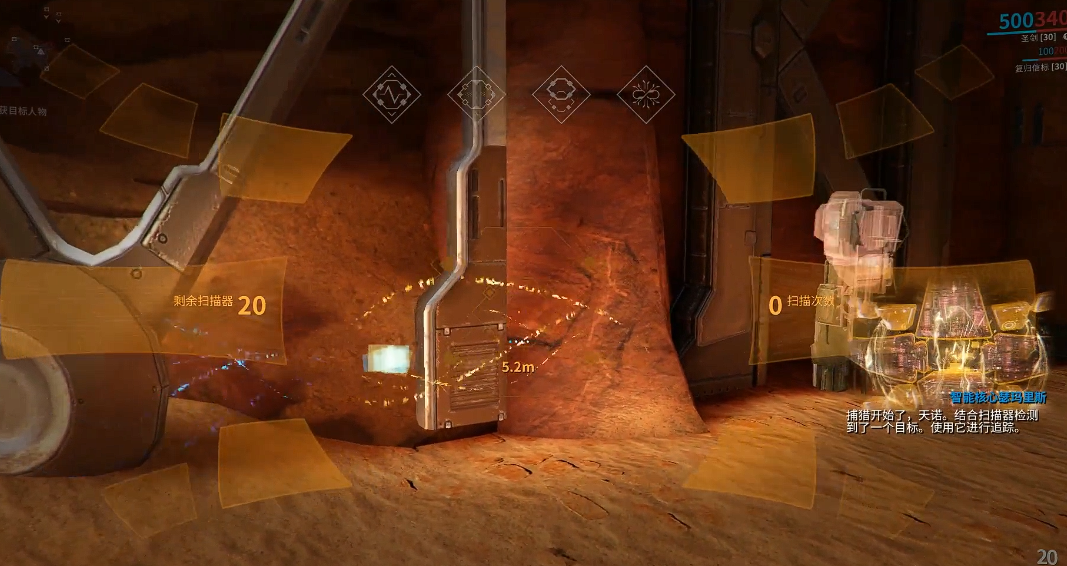 首先得去中继站二层右侧区域找那几个暗橘黄色的中枢NPC接前置任务。接完任务后记得在军械库里装备好结合扫描器和动能吸收陷阱,这两样东西是核心道具。任务过程中需要扫描三只精英沙漠枪兵,每只身上有四个发光点需要逐个扫描,记得先用陷阱定住目标再操作,否则它们会逃跑。