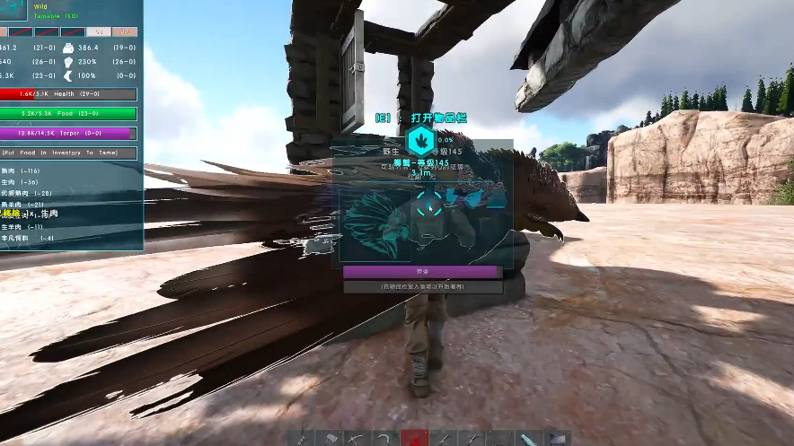 如果暂时没有条件制作高级饲料,也可以用优质生肉或者优质熟肉代替,不过驯服速度会慢一些。生肉虽然也能用,但效果最差,所以咱们尽量还是准备更好的饲料。狮鹫通常栖息在高山或者悬崖附近,咱们可以去地图上的高地寻找它们。驯服时记得保持隐蔽,用麻醉箭或者麻醉镖慢慢消耗它的眩晕值。