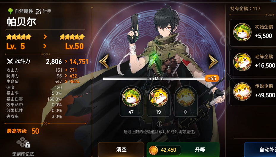 企鹅的使用也有一定技巧,不建议直接喂给需要培养的角色。更高效的方式是将企鹅用于提升低星小怪的等级,再通过升星系统转化为高星狗粮。1级小怪吃掉两个同属性1星企鹅后可升至19级,接近20级升星门槛;5级小怪则能直接达到20级并升星。