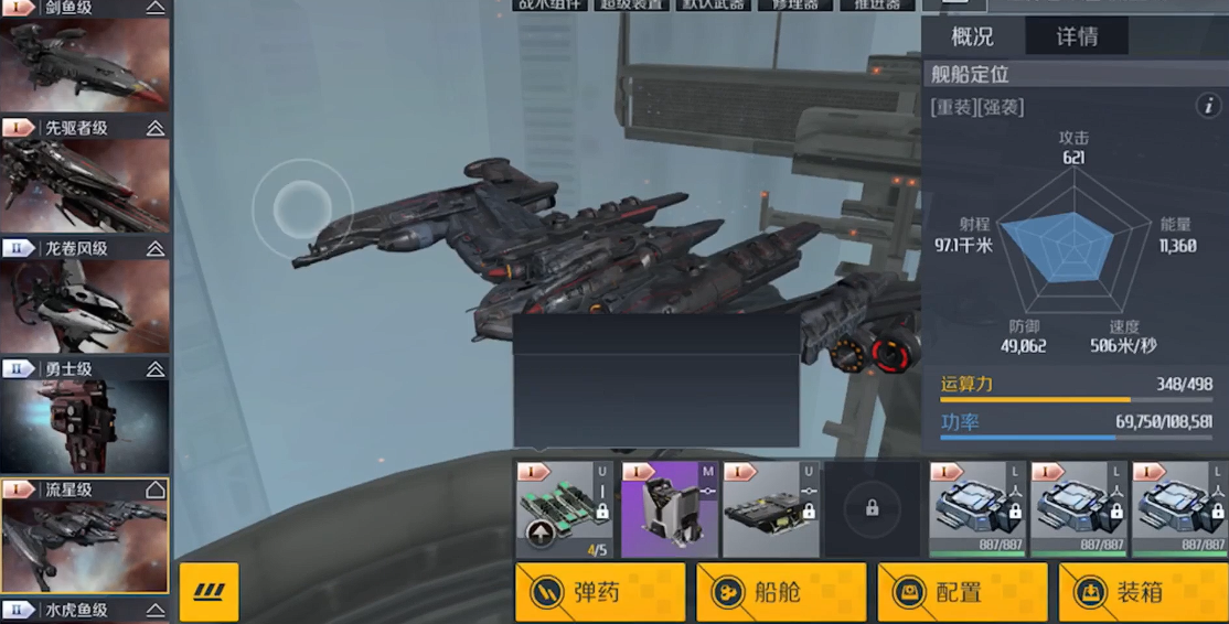 战斗操作需注意能量分配与距离控制。无人机攻击范围较远,但本体舰船需避免被近身。推荐携带能量回充装置和护盾生成器以维持生存能力,武器选择上可搭配大型磁轨炮或激光炮补充瞬时伤害。面对高威胁目标时,优先启动无人机挂仓并利用战术组件的能量增益快速充能,形成火力压制。
