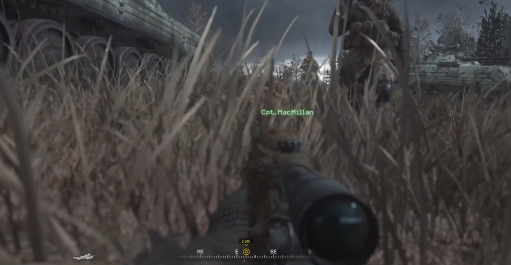前半段的关键是紧跟麦克米兰的指示,他走咱们就走,他停咱们就停。遇到巡逻队时一定要趴下别动,等他们走远再继续前进。教堂塔楼上的哨兵必须悄悄干掉,否则会触发警报。卡车旁的两个敌人需要同时击杀,随便瞄准一个开枪,另一个交给麦克米兰解决。爬过车底后,楼顶的狙击手也得优先处理,不然会被发现。野狗群最好绕开,它们比敌人还难缠。