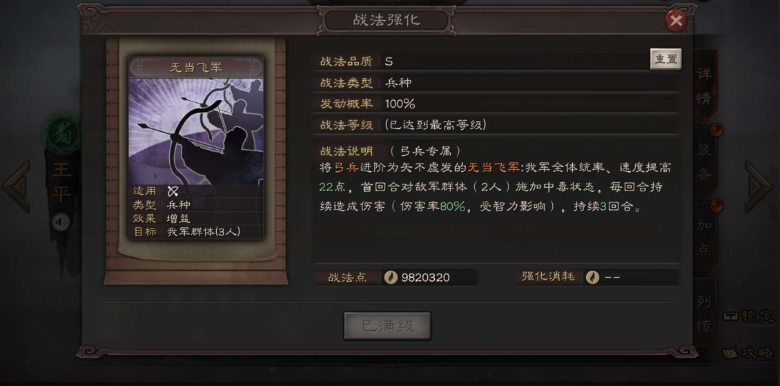 实战中,弓兵队伍常搭配特定战法强化输出或生存能力,例如无当飞军提供法系伤害和防御加成,锦帆军则侧重先攻和发动率提升。针对这些特性,克制方需合理配置战法组合,例如盾兵可携带减伤类战法如抚辑军民,骑兵则可配备突击战法实现快速击杀。兵种克制与战法搭配的协同效应,往往能决定战局走向。