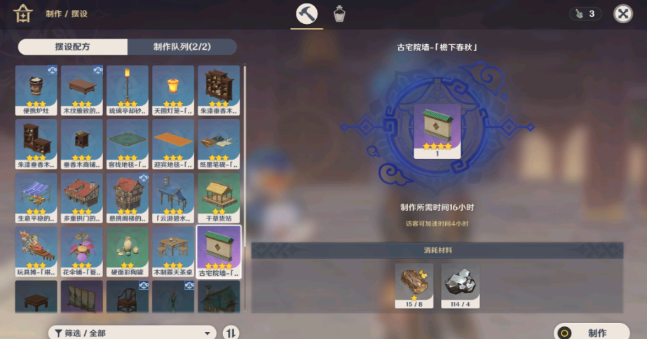 通过砍树、采矿或完成特定任务获取材料,然后在壶灵处制作家具和装饰品。摆放家具不仅能提升家园的繁荣度,还能增加洞天宝钱的积累速度。宝钱可以用来兑换稀有图纸或资源,每周记得清空商店限购物品。初期建议优先制作新图纸的摆设,每次首次制作都能提升信任等级,解锁更多功能。