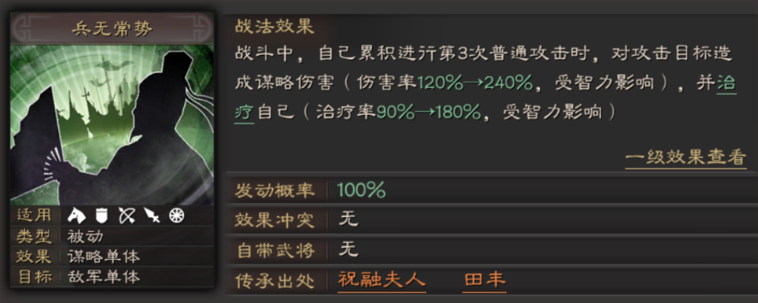 了解了太史慈的核心特点后,接下来就是给他搭配战法。因为自带连击,所以他最适合携带那些在普通攻击后能触发的突击战法。这样他一次攻击就有可能触发两次战法效果,输出效率非常高。常用的强力突击战法有一骑当千、暴戾无仁、百骑劫营等,其中一骑当千能造成群体伤害,暴戾无仁则附带混乱控制,都是很顶级的选择。如果你的战法资源没有那么豪华,用手起刀落、暗藏玄机这类A级战法过渡也是完全可行的。除了纯输出路线,太史慈也可以走辅助路线,携带像折冲御侮、弯弓饮羽这样的战法,折冲御侮能降低敌人属性并给主加加抵御护盾,弯弓饮羽则能打出计穷控制并降低统率,都能为团队做出巨大贡献。