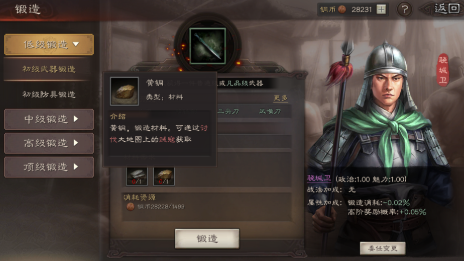 锻造过程中,委任合适的锻造官能大幅提升效率。曹植的七步成诗战法可增加9%高阶装备产出概率,步练师的细致入微则能降低2%资源消耗,这两位武将是锻造时的最优人选。对于新手而言,前期建议通过多次锻造绿色装备过渡,优先获取属性适配的装备,比如武力加成的武器给输出型武将,统率加成的防具给坦克角色,不必强求高级品质,等到铁匠铺等级提升后再逐步替换为紫装或橙装