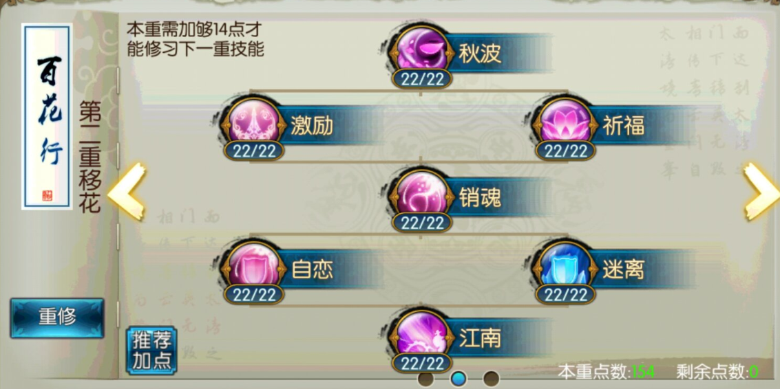 那么合欢到底该优先洗炼什么技能呢?经过很多玩家的实践,普遍认为江南、缠绵和激励这三个技能是核心中的核心。江南是合欢的二重核心输出技能,能快速打出四段高额伤害,洗炼它直接提升最直接的爆发力。缠绵则提供了关键的位移和惊人的100%暴击增益,让合欢能瞬间切入战场并打出致命一击,洗炼它的价值极高。而激励这个技能可以大幅提升你的攻击力,是爆发连招起手必备的增益状态,洗了它能让你的后续所有伤害都提高一个台阶。把这几个技能作为洗炼的首要目标,你的合欢输出框架就妥了。