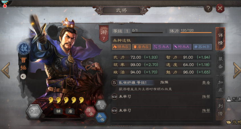 该阵容的构建中,主将曹操需具备S级枪兵适性以激活武锋阵,其战法通常携带刮骨疗毒提供定向治疗和解控,并搭配青州兵在第三回合为全体恢复兵力及附加伤害提升。司马懿作为核心输出,必备战法为士别三日和用武通神,前者提供前三回合的规避与第四回合的爆发,后者则提供持续叠加的谋略伤害。第三将张春华主要携带抚辑军民降低团队战损,并佩戴武锋阵,其自带战法沉断机谋能有效削弱敌方智力,从而间接提升司马懿的输出效率与队伍生存能力。