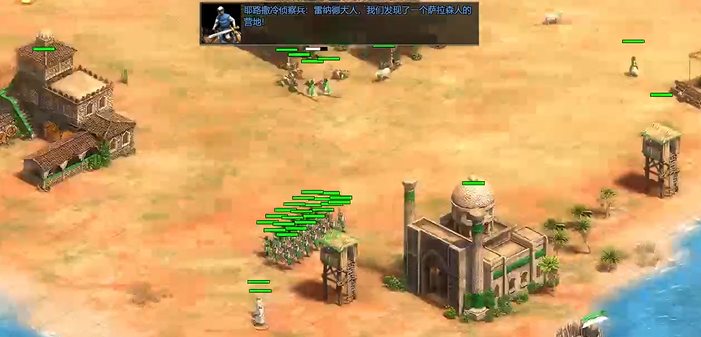 本关的核心任务是击败欧洲十字军,重现历史上的哈丁山战役胜利。开局你只有少量部队,必须立刻指挥农民采集食物和木材,同时派遣侦察兵寻找合适的基地位置。建议选择靠近悬崖或树林等具有天然屏障的区域建立城镇中心,这能有效减少早期被敌人骚扰的压力。经济发展初期,优先考虑升级时代至关重要,因为封建时代与城堡时代的科技将解锁更强力的兵种和防御建筑。你需要有计划地囤积木材与黄金,为后续大量生产骑兵和弓箭手做好物资准备。这一阶段的平稳过渡是后续军事行动的基础。