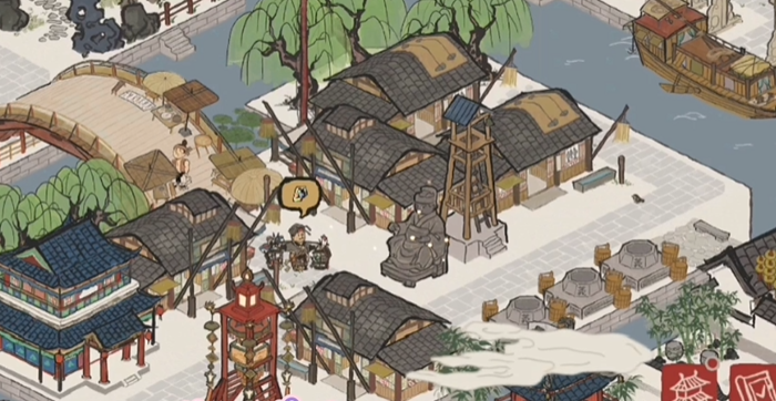进行布局规划时,首先要深入理解雕像加成系统并据此安排核心生产建筑。游戏中的各类雕像如灶王爷、财神爷或美仁狸等,在修复后能为特定建筑提供产量或铜钱加成,其效果范围是以格数计算的,范围内的建筑会有特效标志。因此必须将受祝福的建筑如餐馆、水井、画室或丝织坊等,紧密布置在对应雕像的加成范围内以最大化收益。城市的整体规划应划分明确的功能区域,将居民区、商业区与生产工业区合理分布,并通过石板路、木桥等交通网络连接,这不仅能提升视觉上的秩序感,更能实质性地优化资源调配与居民工作路径。