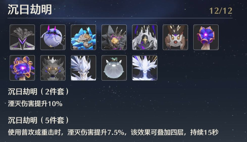 声骸搭配是达成合格面板的核心,最优选择是沉日劫明五件套,它能直接提升湮灭伤害并与暗主的普攻重击机制完美契合。声骸的COST分配强烈推荐43311组合,具体到主词条选择,四号位声骸应在暴击率与暴击伤害间根据整体面板平衡选择,三号位声骸务必选择湮灭伤害加成,而两个一号位声骸则固定选择攻击力百分比,这套配置能最大化暗主的输出乘区。