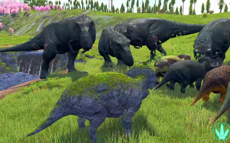 三角龙作为典型的食草恐龙,其进食是维持生存的核心机制,具体操作是靠近可