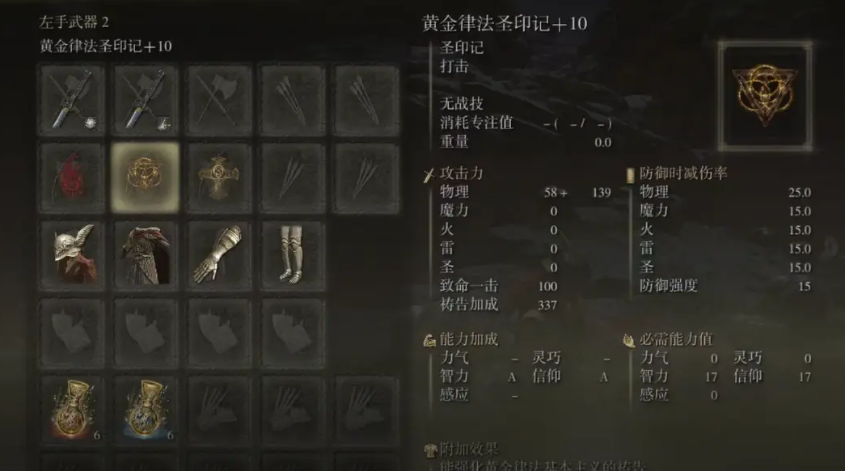 中期成型期核心是“智信拉满、力敏适配”,智力与信仰同步加到40-45,这是多数智信武器与法术/祷告的伤害阈值,同时将生命力补到30-35、集中力到25-30,确保续航与生存。武器优先选带智信补正的装备,比如夜与火之剑、亵渎圣剑,搭配黄金律法圣印记与死王子杖,右手近战输出、左手切换法杖放法术,战术灵活度拉满。护符选魔力对蝎、献斗剑、古王护符,最大化增伤与生存。