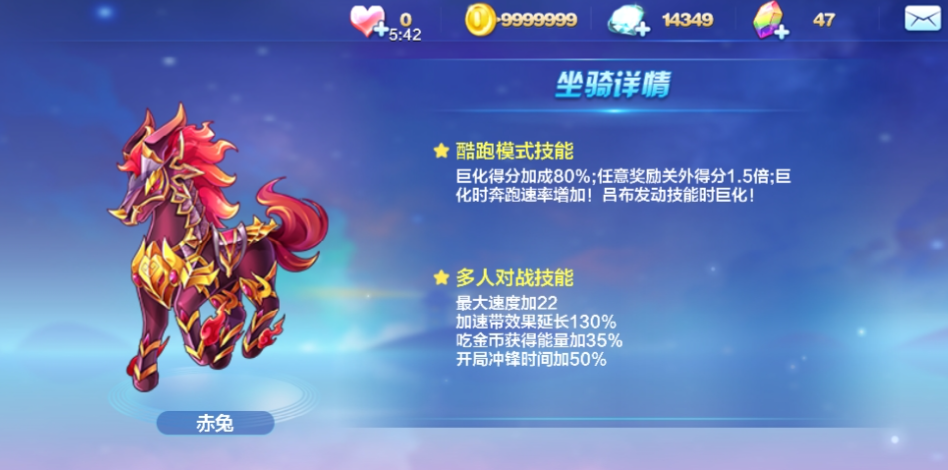 实战操作中,建议在奖励关外提前积攒能量,进入超级奖励关卡时同步开启技能,让枪阵飞星与关卡得分叠加,触发金色技能特效时优先使用,最大化速度与分数收益。多人对战模式下,孙策巨化加速效果显著,配合冲刺类坐骑与加速宠物,可保持全程高速领跑,技能中断机制能灵活躲避障碍,减少减速失误,整体竞速表现稳定,适合追求稳定名次的玩家使用。