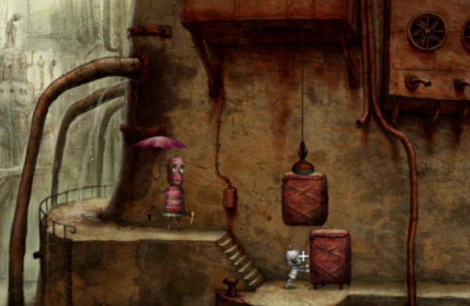 返回老鼠所在位置,使用吸盘枪瞄准暴露的老鼠进行射击。吸盘枪的吸附范围有限,需确保射击角度正确。捕获后,将老鼠交给场景中打红伞的女性机器人,即可换取雨伞道具。雨伞用于后续通过漏水的区域,是推进剧情的重要物品。