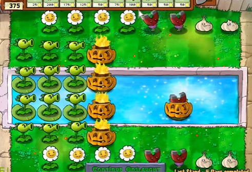 初期阵型建议在水路放置双发射手和火炬树桩,陆地用高坚果和地刺组成防线。每波结束后会补充250阳光,记得及时用这些阳光强化薄弱区域,比如在僵尸密集的行列补地刺或磁力菇。水路可以放两个坚果墙拖延冰车僵尸,陆地的铁桶僵尸用樱桃炸弹快速解决,别让小丑僵尸靠近防线,它的爆炸会破坏大片植物。