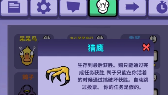中立阵营中的猎鹰是鹈鹕的另一大威胁。猎鹰与鹈鹕通常不会在同一局游戏中同时出现,但若存在,猎鹰的存活会直接阻碍鹈鹕的胜利条件。鸽子通过感染所有玩家获胜,其高机动性可能干扰鹈鹕的吞噬节奏。鹈鹕需在游戏中段优先解决这类中立角色,以减少后期变数。