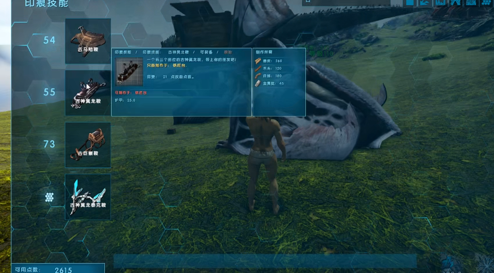 古神翼龙鞍的解锁与制作是驯服后的关键步骤。玩家需达到55级才能解锁鞍具印痕技能,消耗21技能点学习后,需在铁匠台用260兽皮、180纤维、120木头和45金属锭制作。金属锭的获取需要优先准备,可通过熔炼金属矿石获得。鞍具制作完成后,面对已驯服的古神翼龙打开其物品栏,将鞍具拖入装备槽即可骑乘。该鞍具支持三人同时乘坐,但需注意乘客重量会全额叠加至古神翼龙负重属性上。