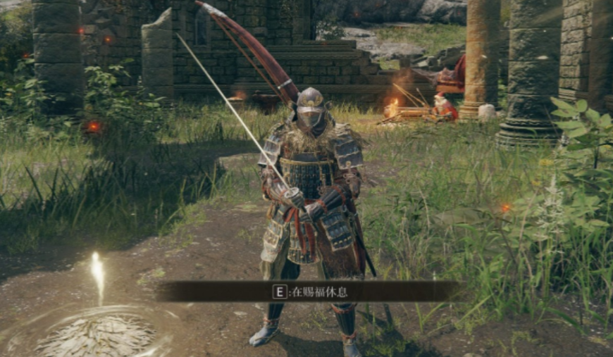 除了击败敌人掉落,咱们还可以通过商人购买的方式获得另一套武士风格装备——芦苇之地套装。隐居商人的破屋是购买地点,找到篝火旁的老头对话即可在商店中找到。这套装备属性中规中矩,但胜在获取简单,适合前期过渡使用。如果喜欢更独特的造型,可以搭配老翁面具,整体风格会更加协调。