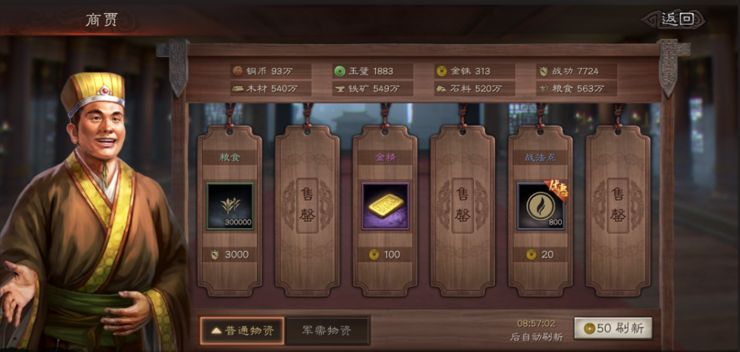 别忘了商贾功能,这里可以用多余的资源兑换铜币,尤其是木材、铁矿这些容易溢出的资源,换成铜币更划算。军团捐献也是个不错的选择,加入活跃军团后,和队友互相捐资源,既能拿铜币还能提升军团贡献。如果背包里有不用的低级装备,直接卖掉换铜币,既清理空间又赚一笔。