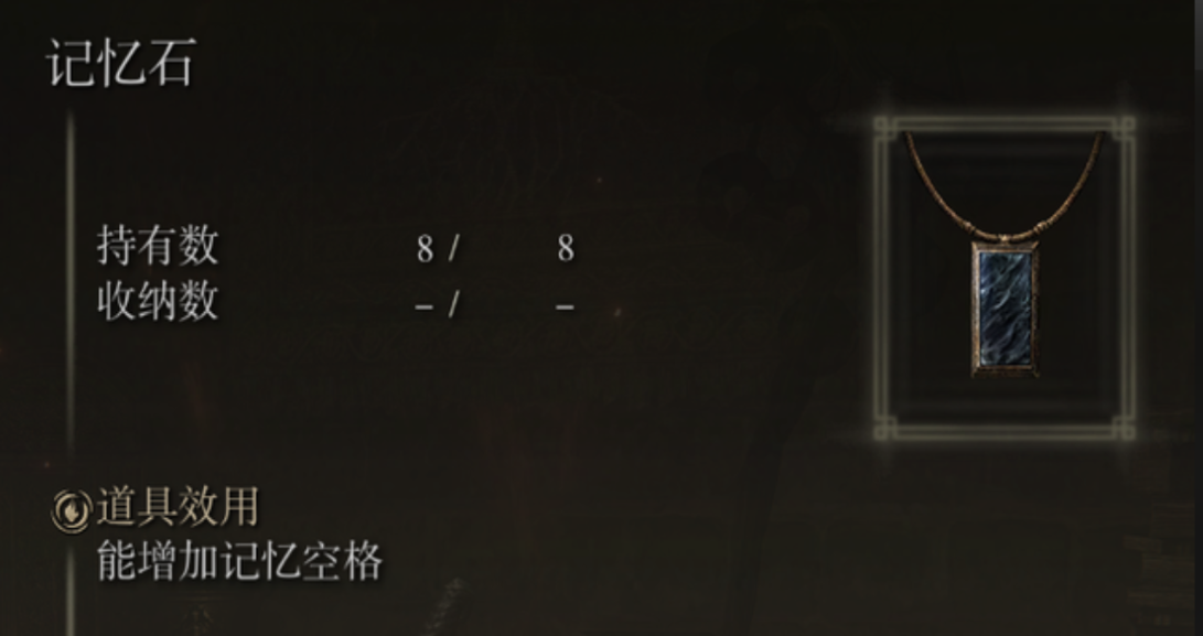 记忆石是提升法术能力的关键道具,主要用于增加记忆空格数量。获取记忆石后无需手动使用,只需将其放入背包即可自动生效。每个记忆石会永久增加一个记忆空格,相当于扩展了法术栏位,让玩家能够装备更多法术或祷告。记忆空格的数量直接影响战斗中可使用的法术种类,对法师类build尤为重要。