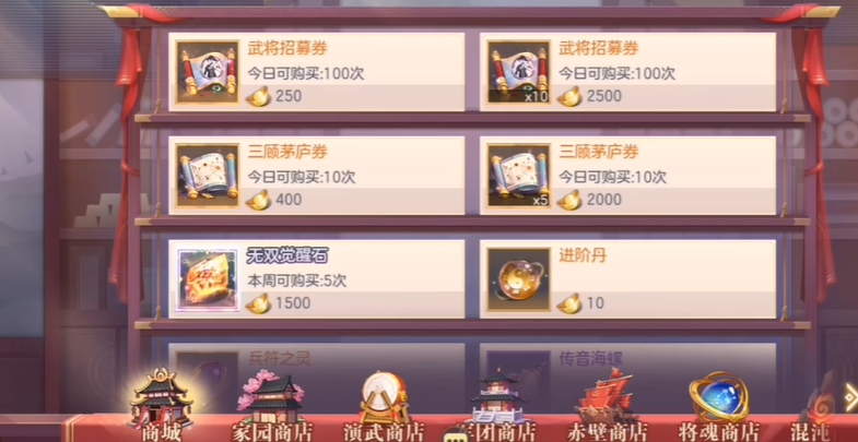 声望兑换要优先保证所有橙色神兵都达到无双三火,这是中期发展的关键。后期可以考虑转向紫色神兵碎片的兑换,但千万别急着换普通唤灵石。每周的无双觉醒石也值得关注,这是提升武将实力的重要材料。龙魂商店里的稀有物品每周刷新,记得定时查看别错过好东西。