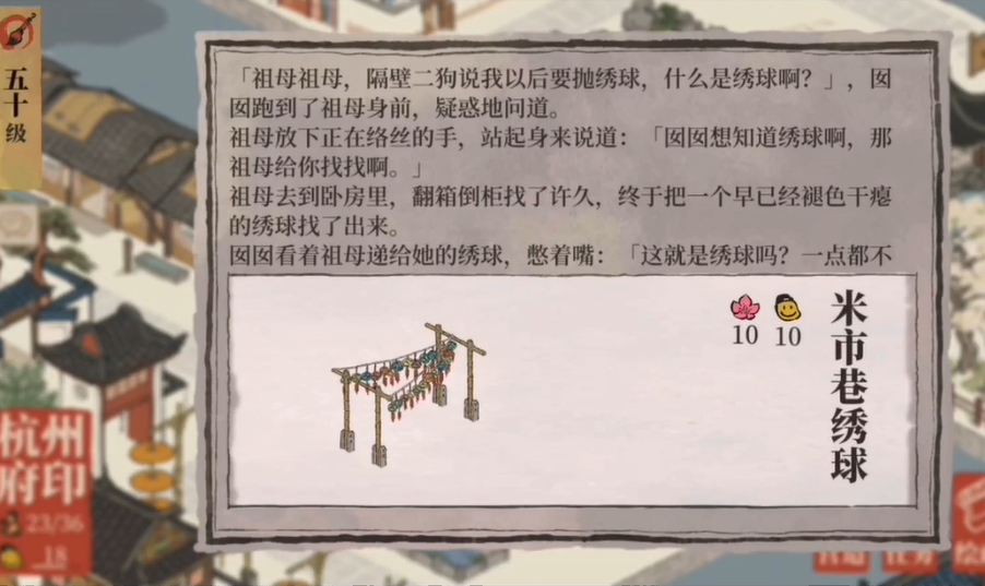 绣球连接是游戏建造环节的一部分,玩家需要通过营造界面来操作绣球建筑。首先打开营造菜单,找到鸡鸣山绣球或米市巷绣球等选项,点击后即可进入连接流程。这个操作允许玩家将绣球安置在指定位置,并启动施工建造,从而逐步完成城市布局。