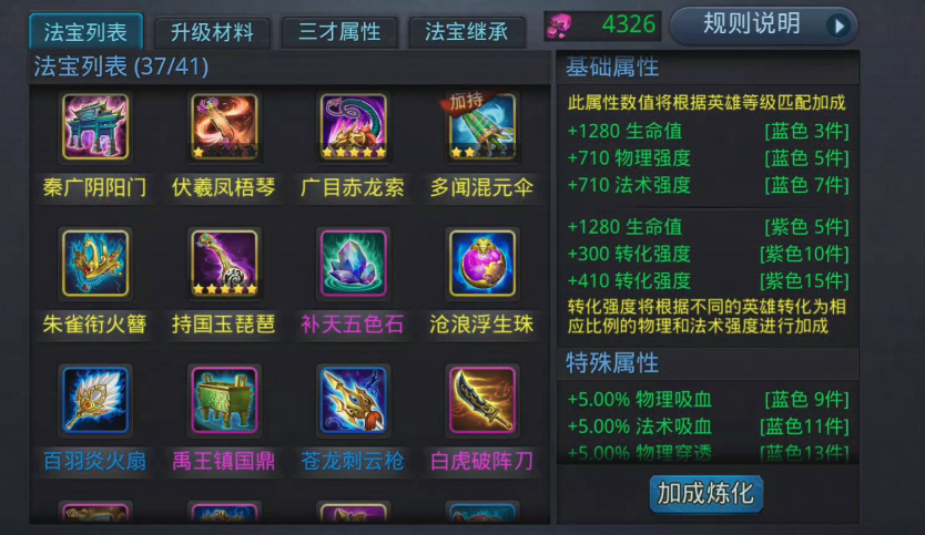 装备属性应侧重物理穿透和暴击,以快速击穿降龙罗汉的防御。法宝方面,龙索或子母环能有效压制其防御并补充控制。琴是非常关键的法宝,其范围减速效果能显著限制降龙罗汉的机动性,便于我方进行风筝战术。五色石可用于抵挡其先手爆发,而钩子类法宝则能打断其关键连招。切记不要堆砌纯攻击装备,穿透和暴击属性才是破防的核心。
