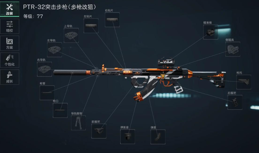 武器搭配应优先选择适配远程支援的枪械,例如PTR-32突击步枪或M700狙击步枪,以稳定的后坐力保障中远距离精准打击,配件方面推荐瞄准镜提升射击精度和扩容弹匣增强持续输出能力,确保在技能冷却期仍能通过冷枪骚扰维持战场存在。