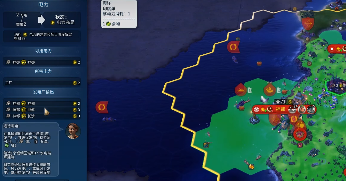 除了连接资源,三环外建造改良设施的另一个重要收益是获取电力。某些改良设施,如风电场、太阳能农场等,在游戏后期能够为城市提供电力。即使这些设施位于三环之外,它们所产生的电力依然会被计入所属城市的电网,这对于维持高耗电城市的生产力至关重要。在外围地块规划发电类改良设施,是解决城市能源问题的有效手段之一。