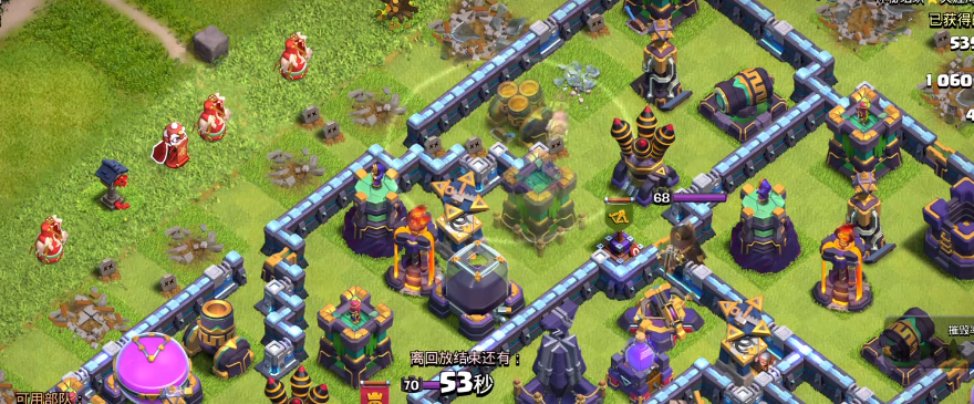 清边是抢道路的基础环节,需用少量弓箭手、法师或超级野蛮人清理阵型两侧的边角建筑,切断外围与核心区域的连接,让大部队不会被零散建筑牵引而绕路,清边时要控制下兵密度,避免过早吸引高额防御火力,同时留意隐形炸弹、弹簧陷阱等隐蔽机关,提前用小单位探路排除威胁,清边范围要覆盖主力推进方向的左右三格区域,确保路线两侧无多余建筑干扰,为后续主力直入核心扫清障碍。