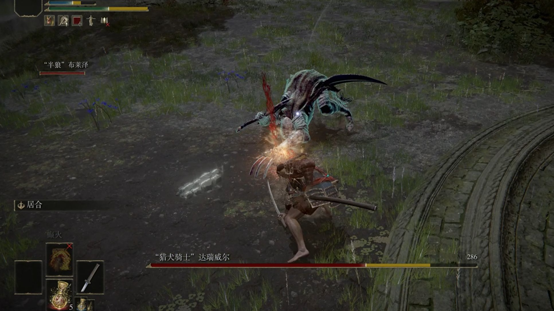 猎犬长牙是一把大曲剑,自带猎犬剑技战技,用起来特别帅——第一段攻击是旋转斩击加后跳,第二段可以接突进横扫。这个战技不仅能打伤害,还能灵活躲技能,非常适合喜欢敏捷流的小伙伴。装备它需要力气18和灵巧17,前期点数不够的话可以双持或者先加点。