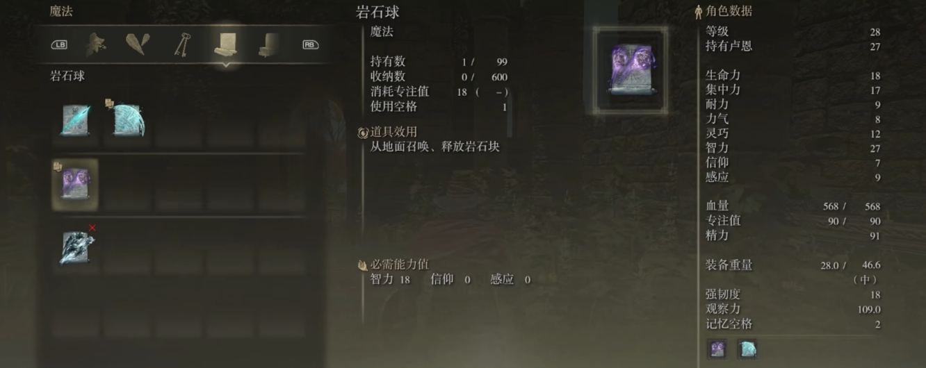 法师作为强力的职业,装备搭配直接影响战斗效率。核心武器推荐右手持名刀月隐,其战技居合斩具备高削韧与远程剑气特性,适合应对快速敌人;左手可选择陨石杖,专精重力系魔法增伤。法杖方面,卢瑟特的辉石杖魔法加成高于女王杖,虽蓝耗较高,但配合辉石魔法能快速清场。副手可备水母盾,其战技提供实用增益。