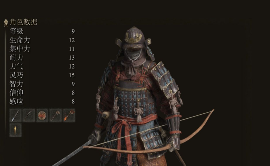 打刀、长牙等灵巧补正高的武器是武士主流选择,尤其长牙需22灵巧和18力量(双持仅需12力量)。若使用猎犬长牙等混合补正武器,力量需达标18,灵巧17。满级后可将灵巧提升至80以最大化输出,力量补至50增强部分武器面板。出血流派可适当分配感应至25-30,强化异常状态积累,但需注意感应对武士并非必需属性。
