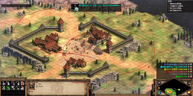 开局阶段需要迅速行动以避免浪费宝贵的资源和时间。应当立即将初始部队,包括德古拉、轻骑兵和弓箭手进行编组,优先清理营地周边的零星敌对单位,为初期发展创造安全空间。经济方面必须尽快生产更多农民,并安排他们高效采集食物和木材,因为食物是支撑人口增长和训练部队的基础,木材则是建造各类建筑的必需品。玩家应尽快建造伐木场和矿场以保障资源的持续稳定供应,同时建造额外的农舍来维持并提高食物产量。早期的军事行动可以利用轻骑兵对敌方经济单位进行骚扰,以打乱敌人的发展节奏。