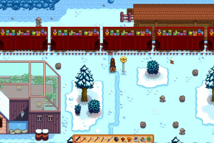 当火车经过时,它会从车厢中掉落一些物品。玩家如果在火车通过时身处火车站附近,可以拾取这些掉落的资源,通常包括石头、煤炭、铁矿石、木材和晶球等。有一种特殊情况是冬季,火车车厢有时会装满礼物而不会掉落物品,但若在冬季第25天有火车到来,则仍会照常掉落。需要提醒的是,玩家应避免站在铁轨上或过于靠近火车,因为这可能会对玩家角色造成伤害。