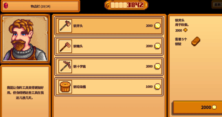 铜锭最直接和关键的用途是用于工具升级。当你收集到足够的铜锭后,可以前往铁匠铺支付相应费用,将你的斧头、十字镐、锄头、喷壶和镰刀全部升级至铜质等级。升级后的工具效率会显著提升,例如铜斧能更快地砍伐树木,铜镐可以挖掘更坚硬的石头和矿石,这为你前期开垦农场和深入矿井探索提供了巨大的便利。